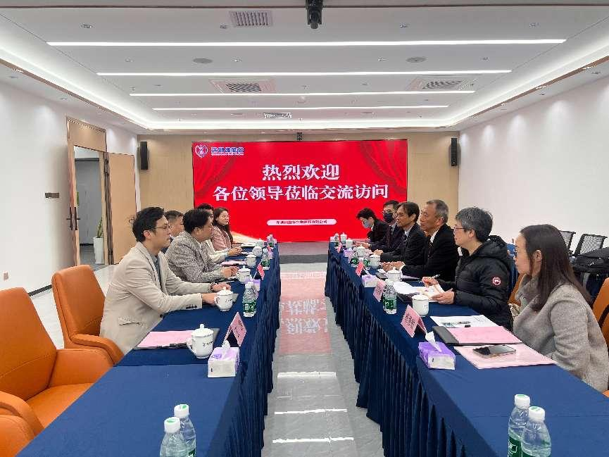 On the morning of December 16, a delegation from the General Office of the Hospital Authority of the Hong Kong Special Administrative Region, including Dr. Xie Dazhi , Senior Administrative Manager of the Integrated Clinical Services Department, Ms.Ou Kunye, Manager of the Clinical Services Department, Ms.Yang Huimin, Senior Pharmacist of the Hospital Authority, Dr. Chen Shouren, Consultant in Hematology at Queen Mary Hospital, The University of Hong Kong, Dr. Wang Shaoming, Consultant in Hematology at Prince of Wales Hospital, The Chinese University of Hong Kong, and Dr. Liu Shimin, Consultant in Hematology at Queen Elizabeth Hospital, visited Shenzhen Cell Valley for an exchange visit. The delegation was warmly received by our company's Chairman Professor Shi Yuanyuan, Chief Scientist Professor Wang Jianxun, Business Director Wei Zheng, Chairman's Assistant Fu Yuchen, Marketing Director Sun Rui, and Director of the General Office Wang Lu.