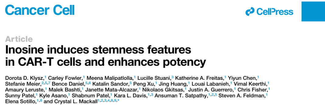 文献分享|增强CAR-T细胞干性并抵抗耗竭:肌苷代谢重编程